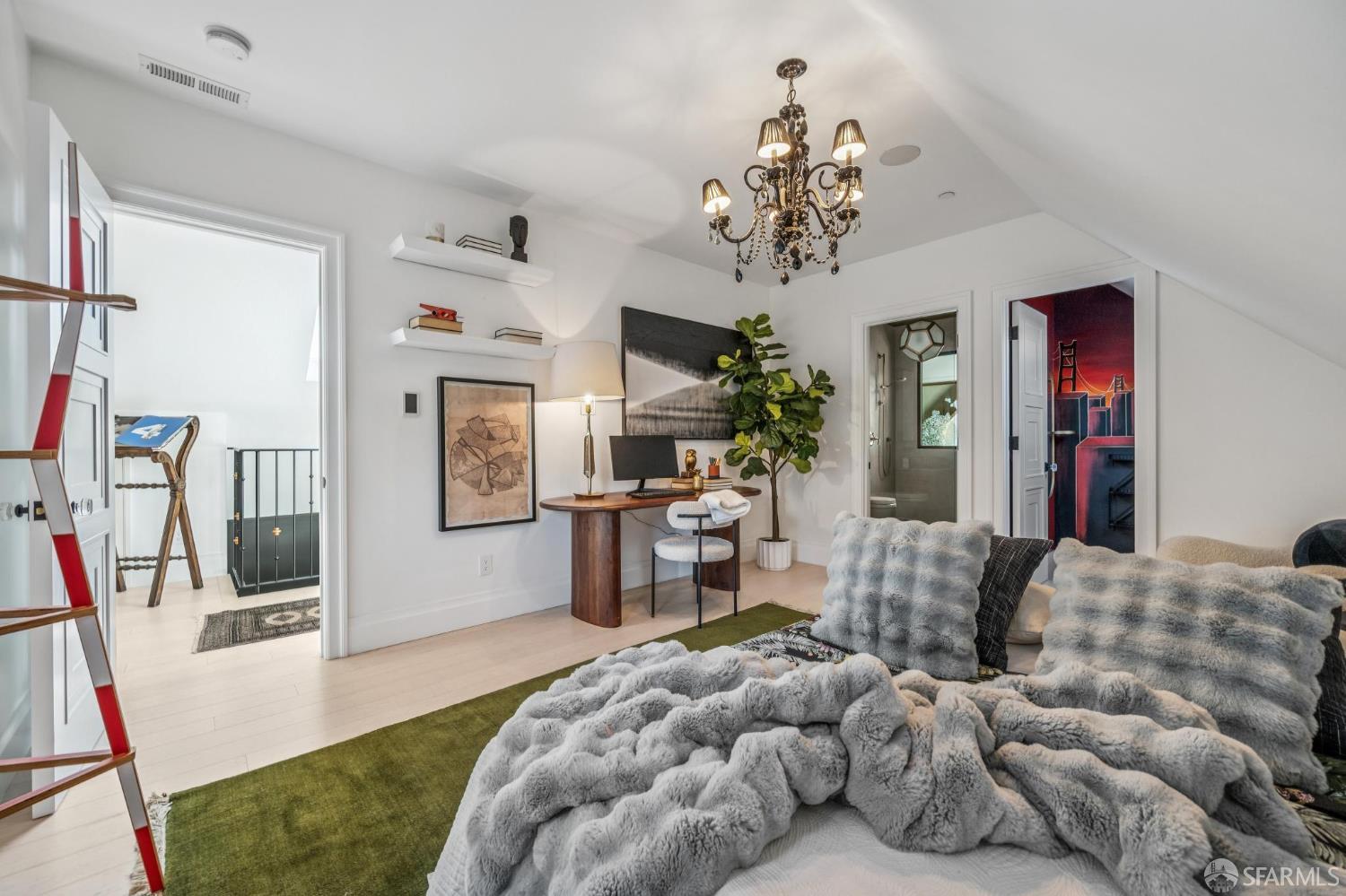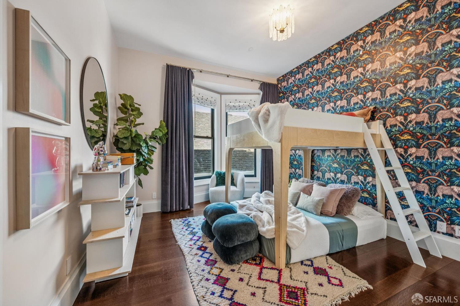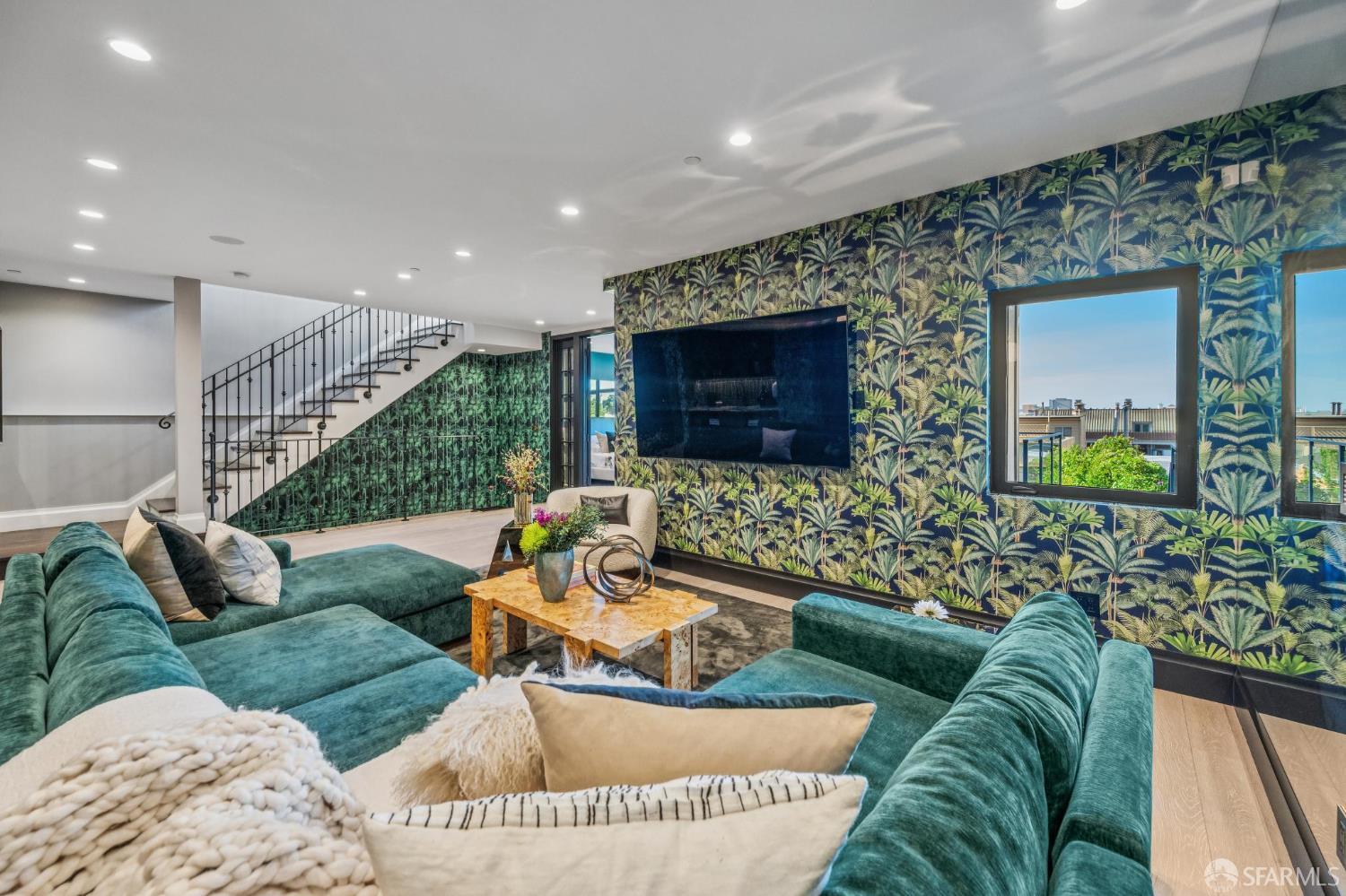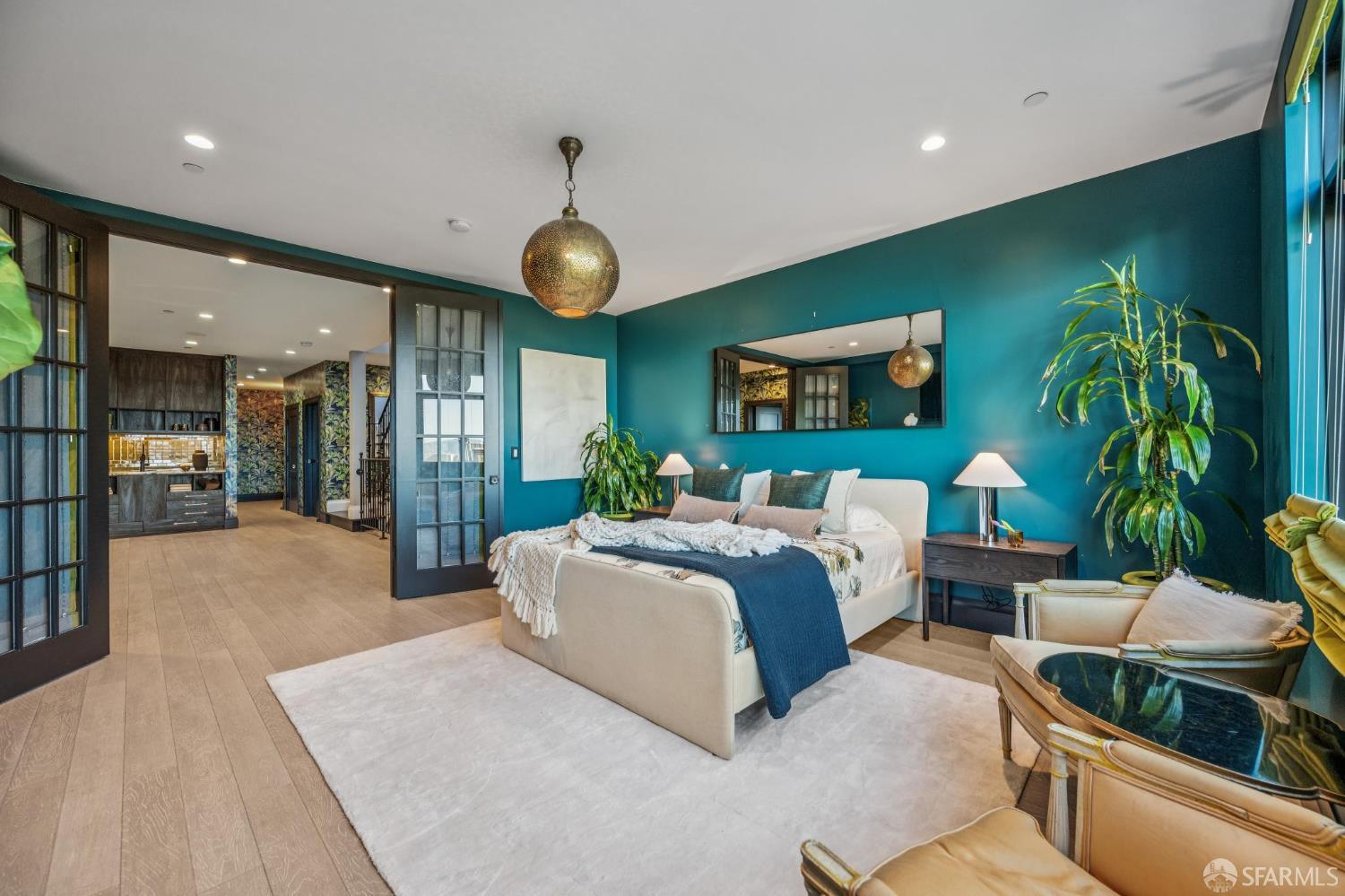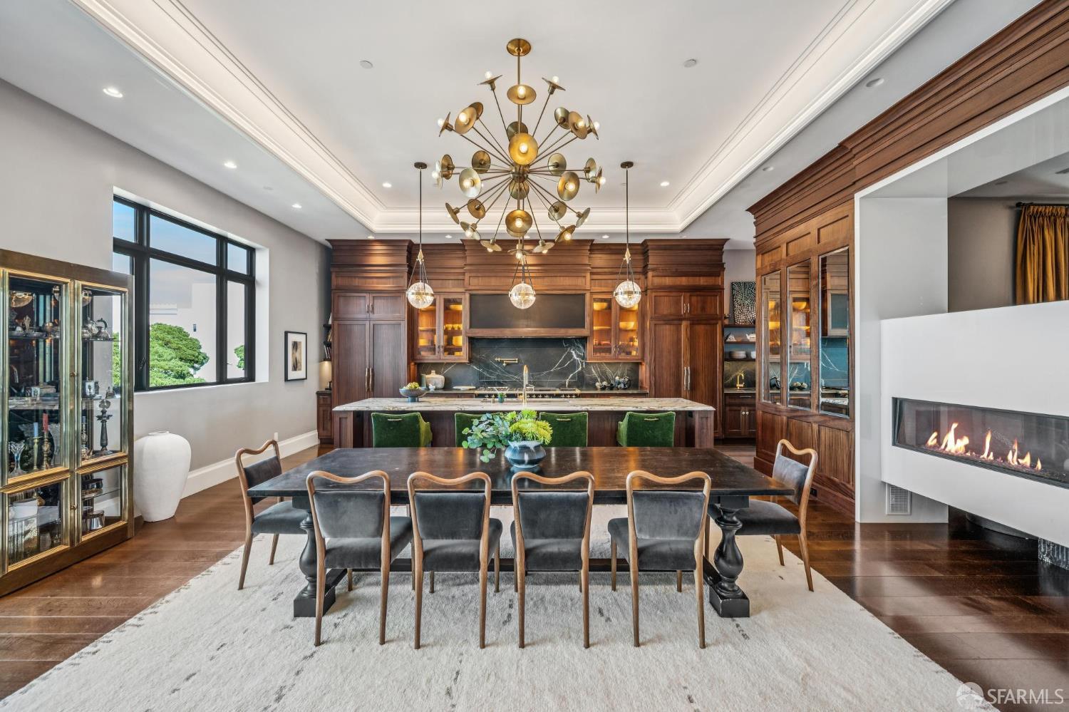 Perched on a coveted flat block inPacific Heights, this grand-scale Victorian, built in 1887 by renowned architect Charles Kenitzer, has been transformed through a meticulous five-year rebuild, marrying historic detail with modern sophistication. Spanning approximately 8,485 square feet, this 6-bedroom, 6-full-bath, 2-powder-room residence offers an extraordinary blend of timeless craftsmanship and contemporary design, complete with an elevator servicing the ground floor through the top four levels and dramatic Bay views from nearly every level. The property includes 4-car parking: a 3-car garage plus gated driveway space. Enter through original double doors into a grand parlor with soaring 13-foot ceilings, wide-plank oak floors, and a sweeping staircase. The gourmet kitchen and great room are anchored by a 9-burner Lacanche range, mahogany cabinetry, three dishwashers, and custom copper fixtures, opening to a terrace with panoramic views and a fully equipped outdoor kitchen. The primary suite offers stunning views, a fireplace, a custom dressing room, and a spa-like bath with a hammered copper tub and steam shower. Additional bedrooms feature charming details, built-ins, and direct views of city landmarks like theTransamerica Pyramid. The top floor includes a skylit bedroom, media room, and office with a private view deck. Designed for relaxation and hosting, the lower floors include a lounge with a backlit onyx bar and stage, a 3,000-bottle wine cellar, a home gym, and full spa facilities including a hot tub, sauna, cold plunge, and outdoor shower. This iconic property has also served as the backdrop for private, high-profile events, most recently hosting a Jordan Brand Super Bowl weekend experience, further underscoring its exceptional capacity for entertaining at the highest level. Located steps from Union Street, Fillmore Street, and thePresidio of San Francisco, this exceptional residence offers grand-scale living in one of the city's most sought-after and storied neighborhoods.